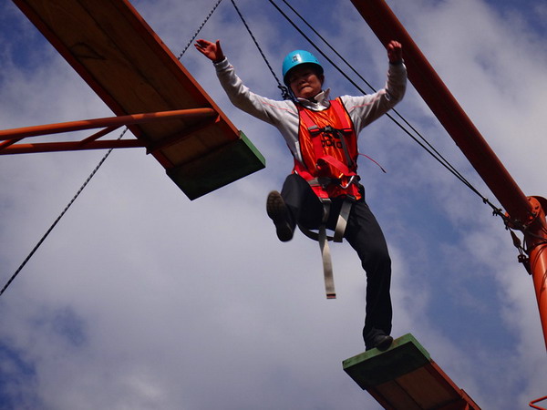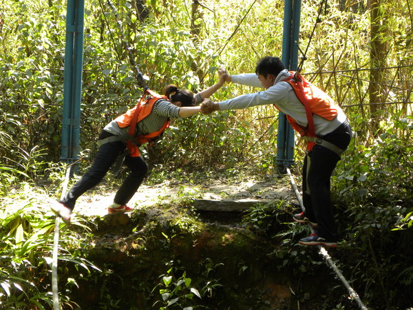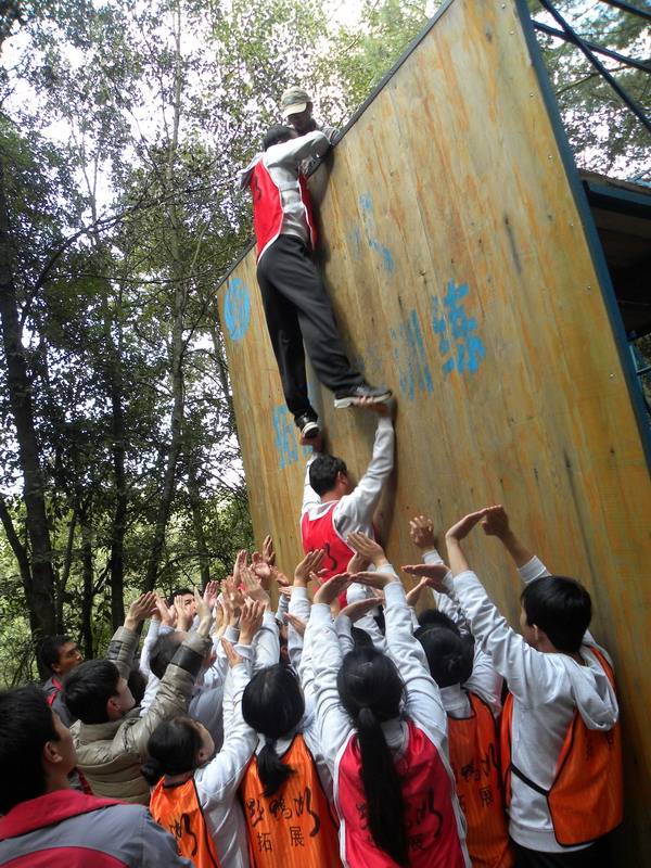 •  20121134日,昆明野鴨湖拓展訓(xùn)練基地那里留下了我們成長(zhǎng)的足跡。在各項(xiàng)訓(xùn)練活動(dòng)中,歌聲與微笑同在,汗水與淚水交織,演繹著敢于擋當(dāng)、不言放棄,奮力拼搏、突破自我,彼此信任、緊密團(tuán)結(jié)的真實(shí)故事,深深打動(dòng)了每一個(gè)人。最特別的還是徒手翻越4.5高的團(tuán)隊(duì)墻,因?yàn)槟抢锊粌H僅有大家奮力向上攀爬劃下的印跡,更多的攀爬過(guò)程中緊密配合的汗水及動(dòng)人的淚水。大家真正體會(huì)到了“責(zé)任”的份量與團(tuán)結(jié)的力量。我們永遠(yuǎn)都是一個(gè)團(tuán)隊(duì)!